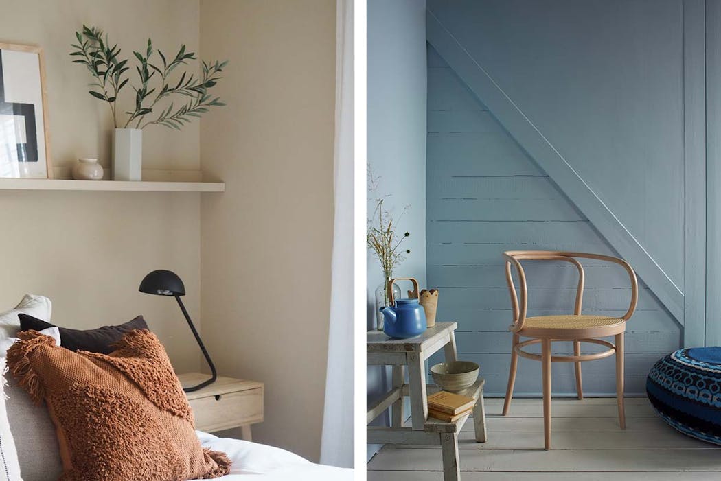 Dans les chambres et plus généralement les espaces de détente, les couleurs douces ont la part belle.